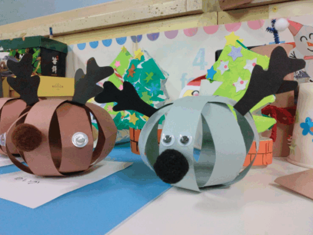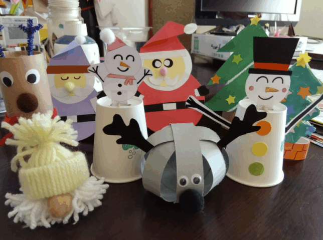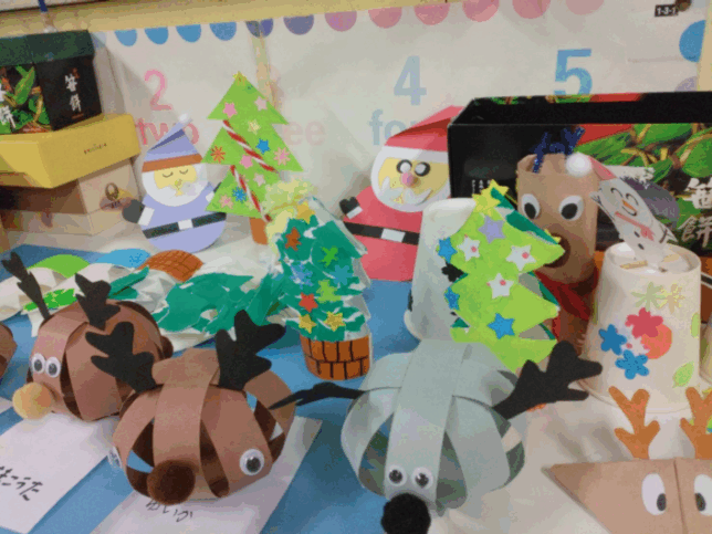 一人ひとりが楽しいクリスマスを想像しながら、トナカイ、クリスマスツリー、サンタクロース、スノーマンなどを作りました。